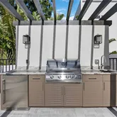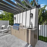 - Exterior Features: Lighting, Outdoor Grill, Outdoor Kitchen, Rain Gutters, Sidewalk, Sliding Doors
