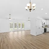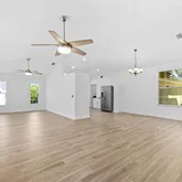 - Interior Features: Ceiling Fan(s), High Ceilings, Open Floorplan, Primary Bedroom Main Floor, Solid Surface Counters, Solid Wood Cabinets, Thermostat