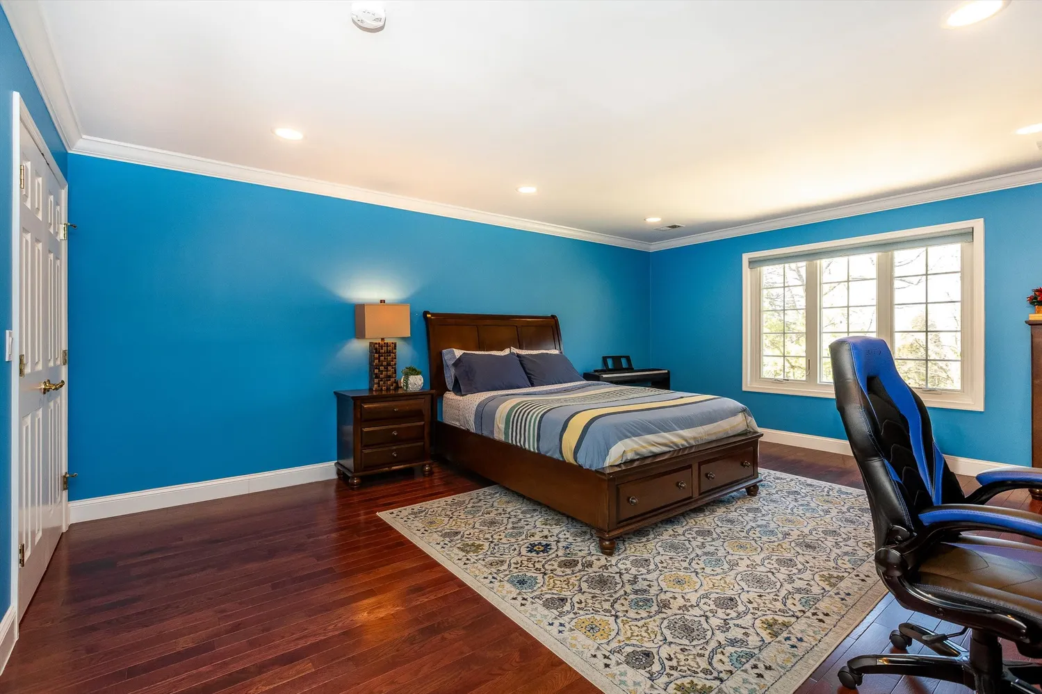 The walk-out lower level extends the home’s versatility, featuring a large recreation space with a built-in bar and direct access to the outdoors, a dedicated gym, an additional bedroom and full bath, an oversized laundry room, and abundant storage throughout. A three-car garage completes this level.