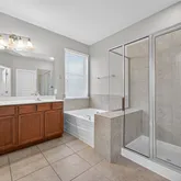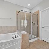 - Interior Features: Breakfast Bar, Double Vanity, Granite Counters, Spa/Hot Tub, Kitchen Family Room Combo, Bath In Primary Bedroom, Pantry, Soaking Tub, Separate Shower, Tub Shower, Window Treatments, Ceiling Fans, Kitchen/Dining Combo, Programmable Thermostat