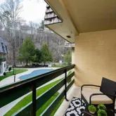 - Large balcony overlooking the pool