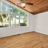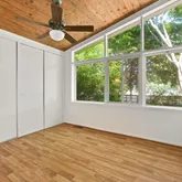 Designed in the mid-20th century, Goodman’s homes remain sought after for their bold modernism and livable simplicity. Here, you’ll find the signature walls of glass, vaulted wood ceilings, and an open floor plan that effortlessly blends indoor and outdoor living. Every room feels connected to the surrounding trees and sky, a hallmark of Goodman’s timeless vision.