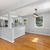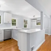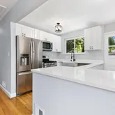 Hardwood floors on the main floor have been refinished, the classic wood burning fireplace was freshly painted. Both bathrooms have been totally redone, with bright and beautiful ceramic tile, new sinks and fixtures. The 1970 era basement has been transformed with new flooring, fresh paint and new lighting....An adorable home with an incredible top to bottom renovation All new open concept kitchen with hardwood flooring, Quartz countertops , stainless appliances, grey cabinets and beautiful lighting,