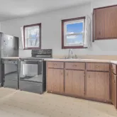- Inclusions: range, refrigerator, portable dishwasher, washer, dryer