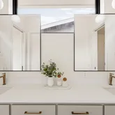 - Interior Features: Bookcases, Ceiling Fan(s), Double Vanity, Entrance Foyer, Eat In Kitchen, High Ceilings, Kitchen Island, Main Level Master, No Interior Steps, Open Floorplan, Quartz Counters, Storage, Soaking Tub, Smart Thermostat, Vaulted Ceilings, Walk In Closets