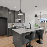 and attention to detail that elevate new construction in Lees Summit. Photo is a sample of the same front elevation of home. Actual color and material...The Greystone by Elevate Design + Build is a 4-bedroom, 3-bathroom home on a day-light lot showcasing a sleek modern