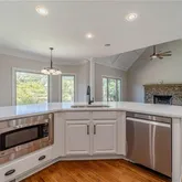 - Kitchen Features: Breakfast Bar, Cabinets White, Kitchen Island, Pantry, Stone Counters, View to Family Room