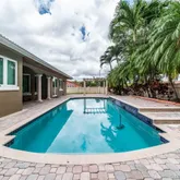 cooktop appliances great for hosting and entertaining guests. The backyard features a pergola, swimming pool, and large tiki hut with a built-in sink. Complete...Fully renovated 4 bedroom 3 full bathroom home with a pool and 2-car garage. This property features outstanding marble floors throughout common areas, and hard-wood floors in the bedrooms. Large master bedroom with walk-in closet. The large kitchen features an island with quartz countertops and an oversized sink, Sub Zero fridge and Wolf