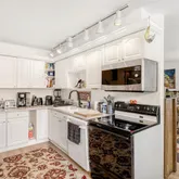 - Room Description: Electric stove/range/oven, Microwave, Dishwasher, Refrigerator, Laminate countertops, White wood cabinetry, Double-bowl sink