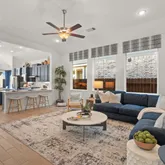 - Interior Features: Breakfast Bar, Double Vanity, High Ceilings, Kitchen Island, Kitchen Family Room Combo, Pantry, Quartz Counters, Soaking Tub, Separate Shower, Tub Shower, Walk In Pantry, Window Treatments, Ceiling Fans, Kitchen/Dining Combo, Programmable Thermostat