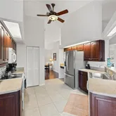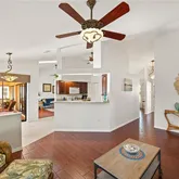 - Interior Features: Cathedral Ceiling(s), Ceiling Fan(s), Crown Molding, Eating Space In Kitchen, Kitchen/Family Room Combo, Living Room/Dining Room Combo, Primary Bedroom Main Floor, Skylight(s), Split Bedroom, Vaulted Ceiling(s), Walk-In Closet(s)