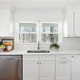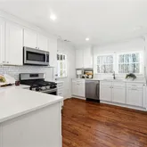 - Kitchen Features: Cabinets White, Stone Counters, View to Family Room