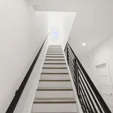 The third floor offers a second bedroom with a large closet, a full hall bathroom with a shower stall, and a conveniently located laundry room with excellent storage. At the end of the hall, the primary suite provides a peaceful retreat with a spacious bedroom, abundant natural light, a generous walk-in closet, and an en-suite bath featuring a double vanity and oversized dual-head shower.