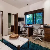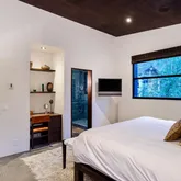 The home's upper level has three guest suites, all with Duxiana King beds for a restorative sleep. The master features an ensuite bath as well as glass door walls to a private balcony with a gas firepit and serene views of Aspen mountain. The lower level features a well-equipped home gym and media room. There is also a separate studio apartment above the garage with its own kitchen, bathroom and washer/dryer.