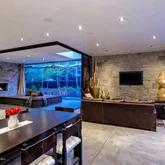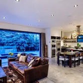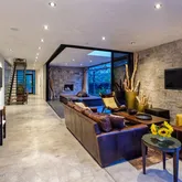Plenty of room for lounging and entertaining, walk out to the modern oasis: a private outdoor pool,hot tub and outdoor grill. Another sliding doorwall connects the living room with the loggia, featuring a gas fireplace and ceiling heater. Flowing from the living area is the chic and welcoming chef's kitchen where everyone is certain to gather both day and night. In addition, an office on the main level has a couch that transforms to a guest bed and it's own full bathroom.