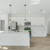 - Interior Features: Eating Space In Kitchen, Kitchen/Family Room Combo, Living Room/Dining Room Combo, Open Floorplan, Primary Bedroom Main Floor, Solid Wood Cabinets, Stone Counters, Thermostat, Walk-In Closet(s)
