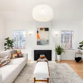 - Room Description: Gorgeous sun-filled room with unique windows and a gas fireplace