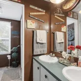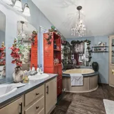 - BATH DESCRIPTION: Shower/Tub, Shower and Jetted Tub, Dressing Area, Double Lavatory, Vinyl Tile, Linen Closet