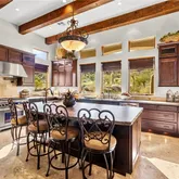 - Room Description: Breakfast Bar/Counter,Breakfast Nook/Eating Area,Garden Window,Island,Marble/Stone Flooring,Stainless Steel Appliances