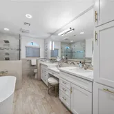 - Room Bathroom Features: Bathtub, Shower, Shower in Tub, Double sinks in bath(s), Double Sinks in Primary Bath, Quartz Counters, Remodeled, Separate tub and shower, Soaking Tub, Upgraded, Vanity area, Walk-in shower