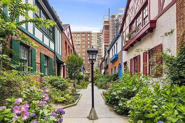 This second floor unit has a direct view on to the walk. Original details...Enter through the private wrought iron gate and find yourself in a magical secret garden. Nestled on this wonderful historic landmarked street you’ll find a beautiful two-story Tudor Style home adorned with window boxes, blue shutters and enchanting front garden. Welcome to Pomander Walk and a RARELY available quaint and beautiful two bedroom apartment in one of the city’s most charming and historic private gated communities.