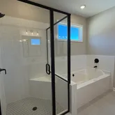 - Interior: Vaulted Ceiling(s), High Ceilings, Double Vanity, Separate Shower, Tile Bath, Walk-In Closet(s), Master On Main Level, Split Bedroom Plan