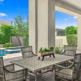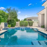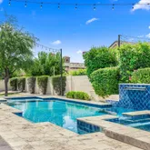 Escape to your private oasis in the resort-style backyard, featuring an extended covered patio, a stunning pool and spa, enhanced with bistro lighting, and built-in BBQ for quiet relaxation or continued outdoor entertaining.