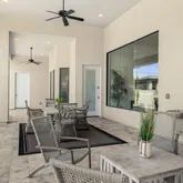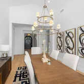 For more formal occasions, enjoy the sophistication of the formal dining room, framed by a massive, vaulted ceiling and towering window with unobstructed views of the pool and spa.