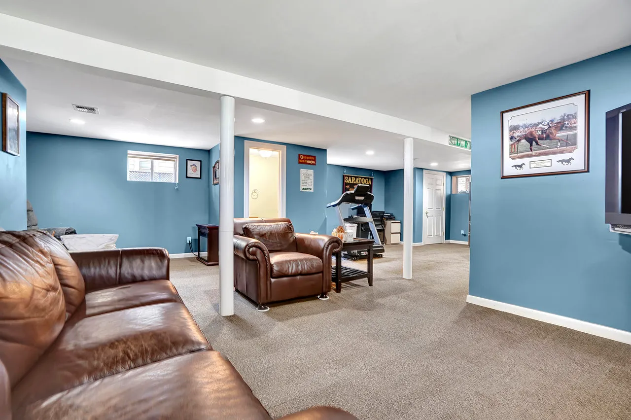 Fully finished basement with high ceilings provides additional living space along with a half bathroom and an abundance of storage space. The home also features central AC and forced hot air heating with built-in humidifier, ensuring year-round comfort.