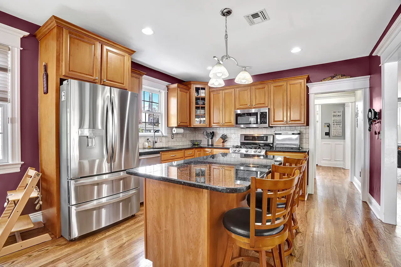 Step inside to discover an inviting ambiance with a spacious foyer/mudroom to transition into the home. A spacious living room with plenty of windows provides nice natural light. The large eat-in kitchen with island and separate dining area provides plenty of seating for entertaining. The open-concept layout seamlessly connects the kitchen to dining room and/or family room for both relaxation and entertaining. A well appointed powder room completes the first floor.