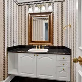 custom floor and crown molding, upgraded lighting and wiring, glass display shelving in the foyer, built-in cabinetry