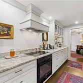 with custom cabinetry and top-of-the-line appliances (including an induction cooktop). Just off the kitchen, the