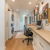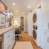 One of the home’s most distinctive features is the private, hidden scullery — an incredibly versatile space that includes a dedicated office area, laundry, coffee station, wine cooler, and extensive custom cabinetry for organized storage. It’s luxury and function perfectly combined.
