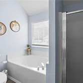 - Interior Features: Breakfast Bar, Breakfast Area, Bathtub, Main Level Primary, Pantry, Pull Down Attic Stairs, Split Bedrooms, Separate Shower