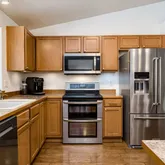 - Kitchen Appliances: Dishwasher, Free Standing Range, Free Standing Refrigerator, Microwave, Pantry, Plumbed For Ice Maker, Stainless Steel Appliance