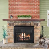 - Fireplace Features: Brick, Mantel(s), Stone, Wood