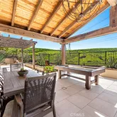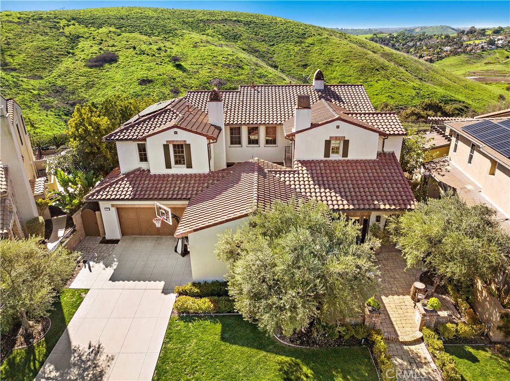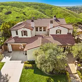 Experience the height of Ladera Ranch living at this impressive semi-custom estate in the exclusive guard-gated enclave of Covenant Hills. Offering serene hill, canyon and sunset views from its idyllic cul-de-sac homesite, the Santa Barbara Ranch-influenced residence enhances each and every day with amenities that include a formal dining room that opens to a private courtyard with fireplace, a multi-screen media room, a spacious loft with fully appointed kitchenette, a custom wine cellar, and a fireplace-warmed...Experience the height of Ladera Ranch living at this impressive semi-custom estate in the exclusive guard-gated enclave of Covenant Hills. Offering serene hill, canyon and sunset views from its idyllic cul-de-sac homesite, the Santa Barbara Ranch-influenced residence enhances each and every day with amenities that include a formal dining room that opens to a private courtyard with fireplace, a multi-screen media room, a spacious loft with fully appointed kitchenette, a custom wine cellar, and a fireplace-warmed family room with amazing views through the bifold doors. A nook with built-in seating embellishes a freshly remodeled kitchen that shines with quartz countertops, white and black Shaker cabinetry with glass uppers, a pass-through window to the rear patio, butler’s pantry, open shelving, two dishwashers, a Wolf range and a built-in Sub-Zero refrigerator. Enjoy the comfort of four bedrooms and three- and one-half baths in approximately 4,600 square feet, complete with an opulent primary suite that is characterized by a sitting area with fireplace, oversized walk-in closet, Brizo fixtures and a large walk-in shower. Savant smart-home control and state-of-the-art AV and communications technology lend convenience throughout, and natural hickory wood and travertine flooring, solid pine interior doors, Restoration Hardware lighting, high-end tile and window treatments, custom millwork and a solar-power system are featured. Overlooking natural open space, the hilltop site of nearly 9,828 square feet presents a long driveway leading to four garage spaces, a gated front walk and patio, custom hardscaping and a spa. Enjoy indoor/outdoor living at its finest through the expansive 16ft bifold door opening to relax in a grand backyard loggia with custom timbers, built-in heaters, and a complete outdoor kitchen with a grill, pizza oven, refrigerator, beverage drawers and a large granite island. The estate is close to Covenant Hills’ private clubhouse and pool, tennis courts, trails, award-winning schools, a skate park, water park and shops and restaurants.