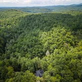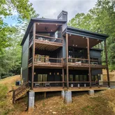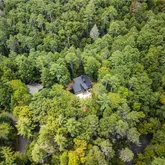 - Lot Features: Back Yard, Navigable River On Lot, Private, Sloped, Stream or River On Lot, Wooded