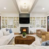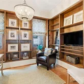 | Custom library with built-in bookcases and architectural molding
