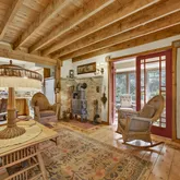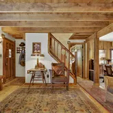 - Interior Features: Exposed Beams, Floor Plan - Traditional, Kitchen - Country, Stain/Lead Glass, Studio, Wainscotting, Wood Floors