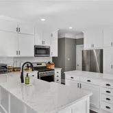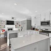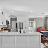 - Kitchen Features: Breakfast Bar, Cabinets White, Eat-in Kitchen, Kitchen Island, Pantry, Stone Counters, View to Family Room