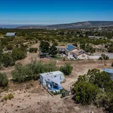 Enjoy the best of country living and modern convenience in this 3-bed, 2-bath single-story home on 5.26 usable acres in North San Diego County. Perfectly set between Temecula’s wine country and Ramona’s friendly main street, this retreat offers privacy, self-sufficiency, and easy routes to both North and South County. Inside, a bright, open layout features tray ceilings, recessed lighting, and a cozy wood-burning stove. Nearly 1,500 sq ft of luxury vinyl plank flooring (installed 2023) spans the living areas, complementing a spacious kitchen with solid-surface counters, stainless appliances, and abundant storage. A Nest thermostat powers a smart air-circulation system that draws warmth from above the stove into the primary suite and circulates cool air in summer. Throughout the home, smart light switches let you control lights while the recessed lights in the living room can dim or change hues via Alexa, Google, or other smart-home systems. Step outside to 360° mountain views, brilliant night skies, and gently rolling, fenced acreage ideal for horses, goats, chickens, or lush gardens. A seven-person hot tub (2023), fire ring, and shaded gazebo invite relaxed outdoor living. Two versatile sheds—one insulated, powered, and windowed—offer endless possibilities as a studio, workshop, or Airbnb. The backyard includes fruit trees, and a 10,000-gallon retaining tank ensures ample water, even for a pool. Utility upgrades include solar power, a private well with pump and filtration, and a whole-house transfer switch with an included 9,500-watt generator. The garage adds a 50-amp EV outlet and a custom workroom, ideal for pottery, woodworking, or other creative projects. This property enjoys a light winter dusting of snow—never requiring chains—and is the last home on the road with strong cell service. An on-site RV pad with hookups welcomes guests or generates income from hikers and wine-country visitors. Commuters can skip freeway congestion, cruising scenic back roads to San Diego via Ramona or to North County through Temecula. Whether gardening, crafting, raising animals, or relaxing with wine under endless stars, this home offers the peaceful, flexible lifestyle most only dream about—perfectly placed between Temecula and Ramona.
