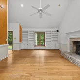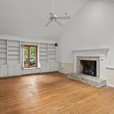 Welcome to this beautiful ranch-style home situated on a flat, over half-acre lot in the highly desirable Stonehenge subdivision—offering the benefits of county taxes! Step through the inviting double-door foyer into a spacious and light-filled vaulted family room, complete with a cozy fireplace and custom built-in bookcases. The kitchen features classic painted white cabinetry, durable vinyl flooring, and opens directly...Charming Ranch Home by Homes by Dickerson on Over Half an Acre in Stonehenge