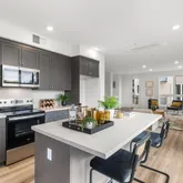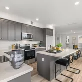 - Kitchen Features: Counter - Solid Surface, Dishwasher, Kitchen Island, Microwave, Range/Oven Free Standing