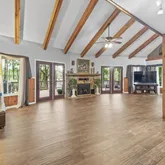 • A vaulted great room with a ceiling 16 ft tall spans the width of the home • Gas fireplace in great room