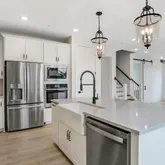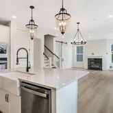 - Room Features: Island, Pantry, Lighting - Ceiling, Lighting - LED, Countertop(s) - Quartz, Lighting - Pendants, Flooring - Laminate Plank