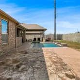 - Exterior Features: Covered Patio, Deck, Fully Fenced, Fence, Sprinkler Irrigation, Outdoor Kitchen, Patio, Private Yard, Tennis Courts