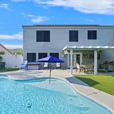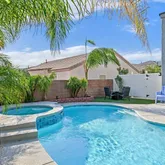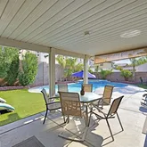 inside and out (2019). Enjoy a resort-style backyard with a resurfaced pool (2022), covered patio, low- maintenance fake grass, and mature landscaping with fruit trees. Modern upgrades include newer HVAC, tankless water heater, soft water system, new pool pump and heater, and solar screens. Close to shopping, freeways, and highly rated schools—all with NO HOA! This is the perfect place to call home. Note: The 4th & 5th Bedrooms are one huge room, yet legally two rooms. Garage not available. Month to month only and will get 30+ day notice when it's under contract. Tenant to pay all utilities, including solar, pool, landscaping. Approx $1200 a month, depending if you heat the pool and what temp you keep the house at.