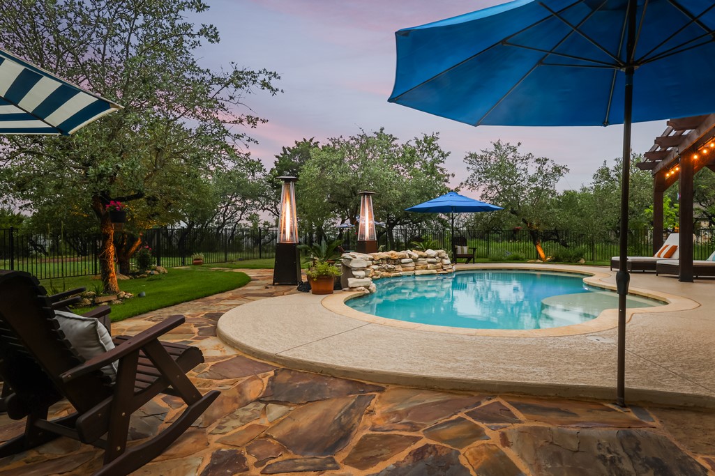 If you are looking to live the Texas lifestyle, you do not want to miss this gorgeous home located in the sought-after Harrison Hills subdivision. This fabulous one-story home features soaring ceilings with wood beams and a spacious .75 acre lot that backs to miles of walking trails. The chef’s kitchen features granite countertops, stainless steel appliances, a 6 burner gas stove, and an elegant tile backsplash. The bright open living area features a fireplace and is adjoined to the kitchen and dining...If you are looking to live the Texas lifestyle, you do not want to miss this gorgeous home located in the sought-after Harrison Hills subdivision. This fabulous one-story home features soaring ceilings with wood beams and a spacious .75 acre lot that backs to miles of walking trails. The chef’s kitchen features granite countertops, stainless steel appliances, a 6 burner gas stove, and an elegant tile backsplash. The bright open living area features a fireplace and is adjoined to the kitchen and dining room all while overlooking the gorgeous views of the backyard greenery and tranquil pool. The master bedroom features an en suite bathroom with a 6’ soaking tub and an expansive walk-in closet. Even the most discerning buyer will want to enjoy the private outdoor patio with a pergola and fireplace overlooking magnificent canyon views. This home has been meticulously maintained and is full of updates including wood flooring, wrought iron fencing, a three-car garage, and so much more! This exquisite LEED-certified home is located 25 minutes from DT Austin and within walking distance to the highly-rated Dripping Springs Elementary.