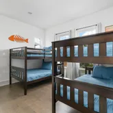 The first master bedroom with king size bed and private en suite bathroom with walk-in shower is located on the second floor. In the walk-in closet you will find a high chair and fold-able crib with sheets to keep even the smallest of guests comfortable. The second floor also has the bunk room with four full size beds and en suite Bathroom with 2 sinks as well as shower/tub combo.
